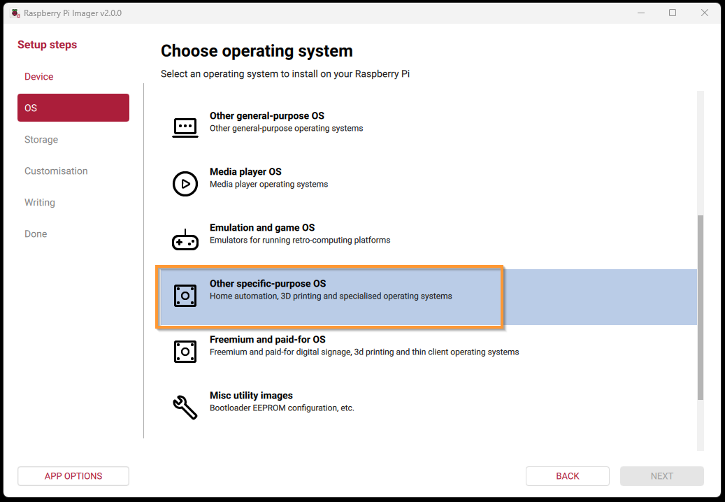 You can do this because all supported versions use the same OS. Next, scroll down until you see the Other Specific-Purpose OS section. See below: