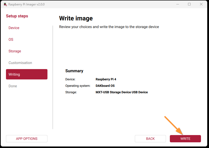 We strongly recommend using a 16 GB SD card or larger for the best performance. Finally, click the Write Button to start the installation process: