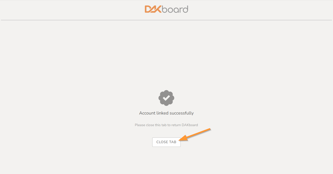Once you authorize the account, click the Close Tab as seen below to return to your DAKboard account:
