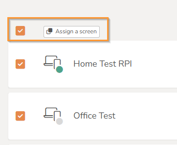 Once you have selected all the Displays you want to show the Screen on, click the Assign a screen Button, seen above, to open the Assignment Panel. Then select the Screen, Loop, or Screen Schedule you want to assign to all the selected displays.
