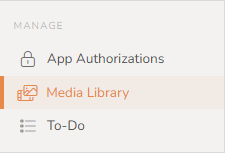 To add your Google Photos to your Media Library, log in to your account and click on the Media Library Tab located in the Manage section on the left side of your account page. See below: