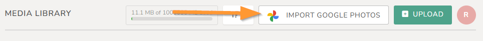 This will open your Media Library. At the top of this page, you will see the Import Google Photos button, as seen below: