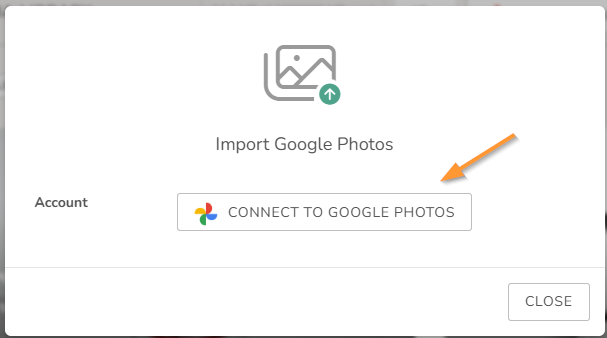 This will open the Google Authentication Modal. Click on the Connect To Google Photos button to start the authentication process: