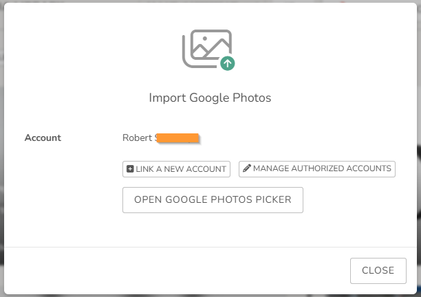 Import Google Photo modal: