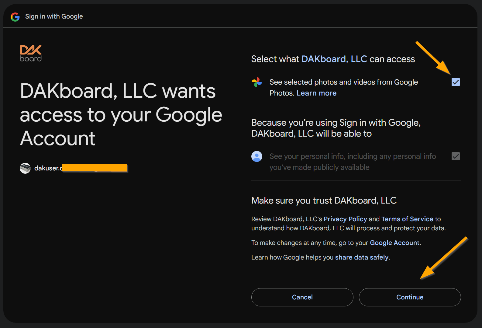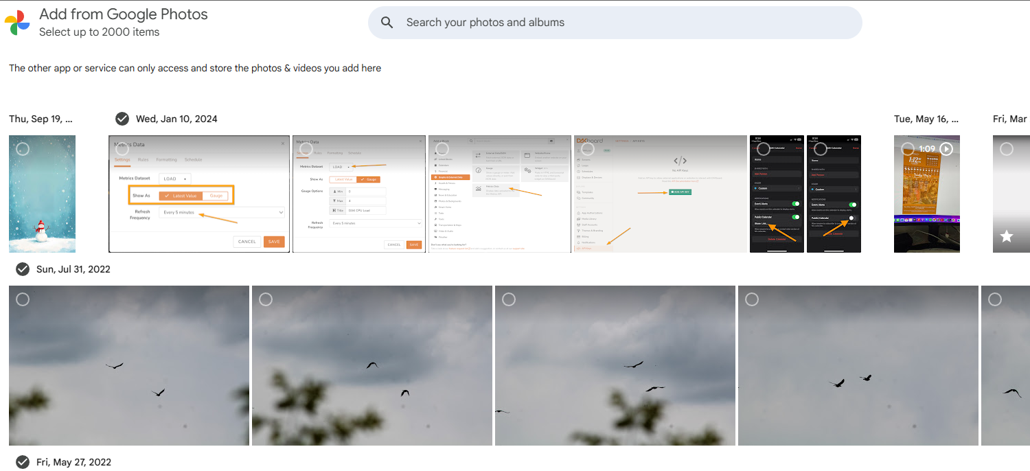 With the new Google Photo Picker design, DAKboard Media Library will now download and store your images on the DAKboard Cloud, so you can continue to use Google Photos. Due to hosting and storage costs, this was limited to Paid Subscriptions only.