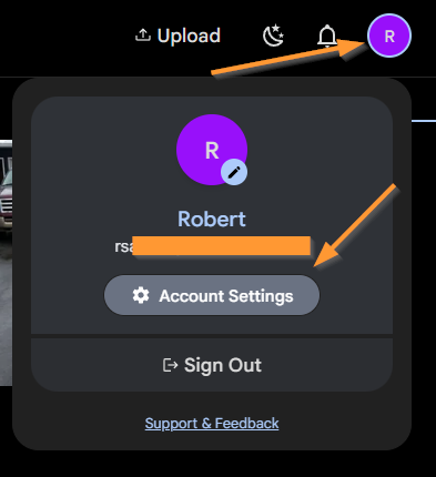 Once in your account, click on the User Icon in the upper right corner, and select Account Settings from the pop-up window: