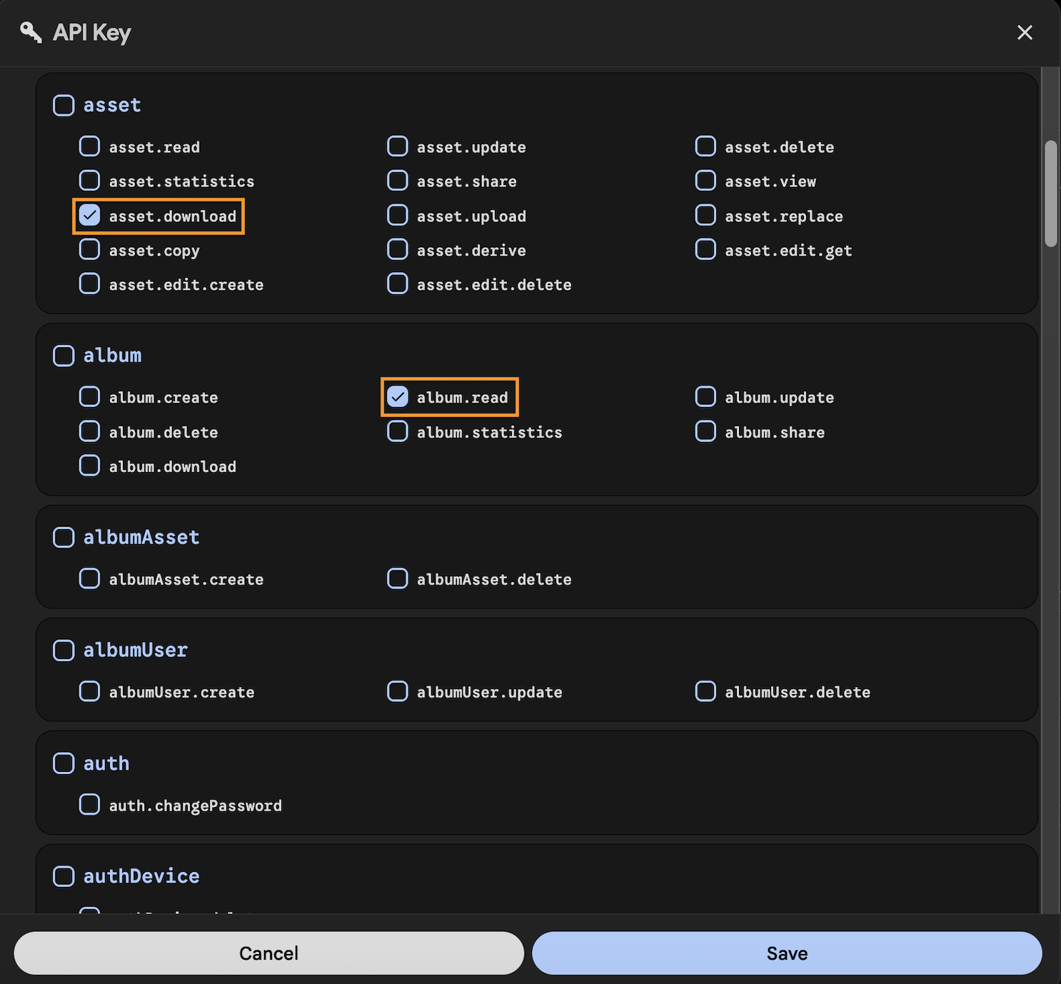 Scroll down the Key page to the Asset and Album section. Make sure you check the following items when creating your Key.